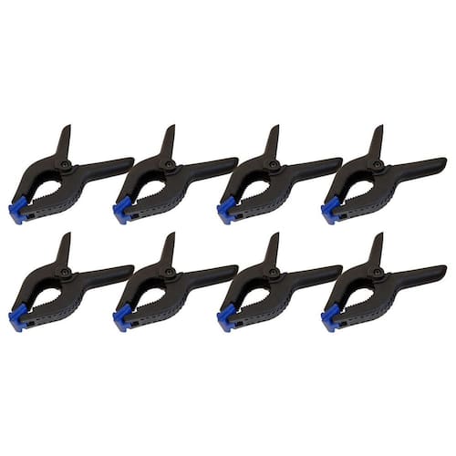 - Marca: Rayco - Referência: 12389-2X - Tamanho: 3 Pol. 75mm - Jogo com 8 grampos sargento - Composto em fibra de nylon - O grampo é resistente à ferrugem e leve - Punhos texturizados para manter firme ao segurar - Super resistente e leve - Garante ótimo auxílio para a fixação de produtos - Ideal para mobilização de objetos em superfícies planas ou bancadas, prender no momento de furar, serrar, colar ou parafusar. - Peso: 100gramas - Garantia: 90 dias Ean: 7791604399722