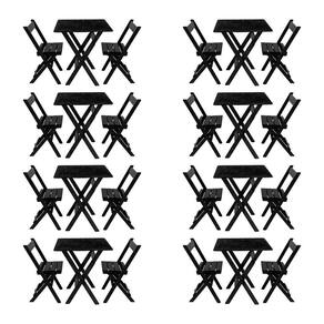 AS IMAGENS SÃO MERAMENTE ILUSTRATIVAS E PODEM SOFRER VARIAÇÕES DE COR E PEQUENOS DETALHES DE ACORDO COM O SEU MONITOR, ILUMINAÇÃO DO AMBIENTE E ATÉ MESMO A SUA PERCEPÇÃO VISUAL.Kit 8 Jogos De Mesa Aparador Bar DobrÃvel Com 2 Cadeiras Em Madeira MaciÃa - Preto