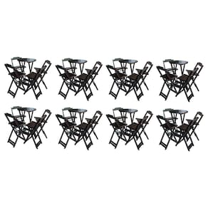 Kit 8 Jogos De Mesa Bistrô De Madeira Com 4 Cadeiras Dobravel Ideal Para Bar E Restaurante Tabaco é ideal para bares, restaurantes, estabelecimentos, áreas de lazer e tambem para sua casa. Feito em madeira maciça, tornando resistentes e duráveis. Seu design permite que seja encaixado em qualquer ambiente, trazendo um toque a mais para seu estabelecimento. Além de sua durabilidade, o que lhe trará conforto para servir seus clientes. Por ser dobrável torna-se mais fácil guardar, manusear e limpar o produto. Atenção: EVITE USAR PRODUTOS ABRASIVOS E QUíMICOS PARA LIMPEZA DO PRODUTO, aconselha-se o uso de pano umedecido para melhor conservação; mantenha o produto fora de chuva e sol constantes. OBS: MDF ULTRA MESA Cor: Tabaco Modelo: Bistrô Dobravel Dimensões: Altura 99cm | Largura 55cm | Profundidade 55cm CADEIRA Cor: Tabaco Modelo: Bistrô Dobravel Dimensões: Altura 100cm | Largura 38cm | Profundidade 37cm