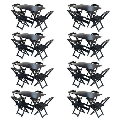 Kit 8 Jogos De Mesa Com 4 Cadeiras De Madeira Dobravel 120x70 Para Bar E Restaurante - Preto - Cor: Preto