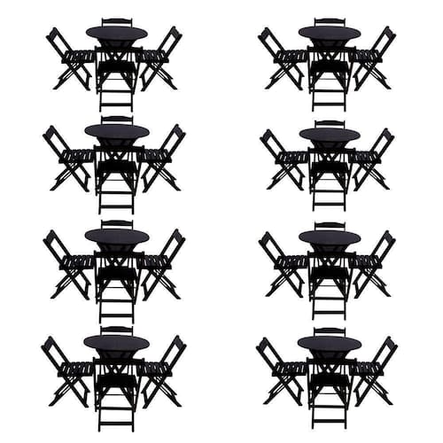 Kit 8 Jogos De Mesa Dobravel Com 4 Cadeiras Tampo Redondo 70x70 Preto - Cor: Preto