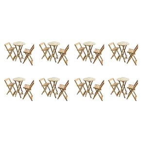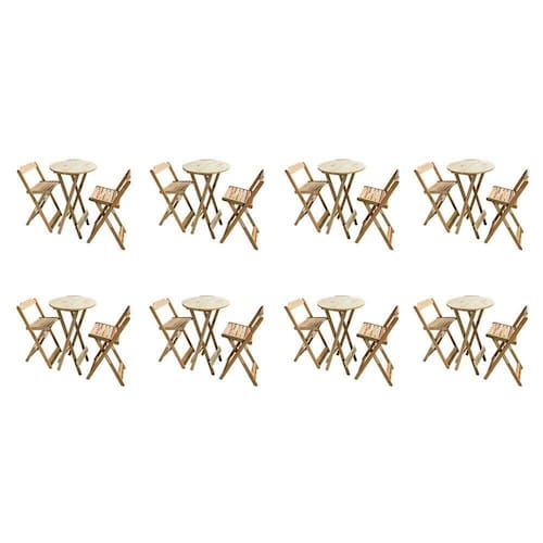 Kit 8 Jogos De Mesas Bistrô De Madeira Dobrável Com 3 Banquetas - Crua