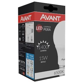 DESCRIÇÃO DA LÂMPADA PERA LED 15W BASE E27 BIVOLT BRANCO - A linha de lâmpadas Pera LED Avant é indicada para ambientes internos e por ser mais econômica e eficiente é a solução ideal para substituir as lâmpadas incandescentes ou fluorescentes. - Ilumine seu ambiente residencial, comercial ou corporativo com as lâmpadas Pera LED Avant. - Corpo em policarbonato branco e difusor em - Policarbonato leitoso.