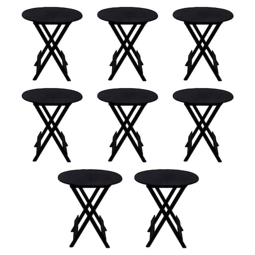 Kit 8 Mesas Redondas Dobráveis em Madeira Maciça 70x70 Preto Ideal para Bares e Restaurantes