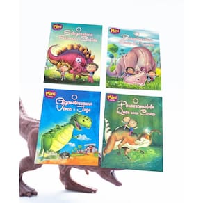 Sobre este livro Os míni livros fazem sucesso há muitos anos, com milhões de exemplares vendidos este estojo reúne 8 fascinantes histórias que estimulam a imaginação das crianças e educam por meio de preciosos ensinamenos. O anquilossauro pinta o muro: o braquiossauro gosta de acampar: o dromiceiomimo e o campeonato de saltos; o estegossauro estoura os balõe: o giganotossauro vence o jogo; o iguanodonte adora ovos de páscoa; o parassaurolofo quer uma coroa; o tricerátopo brinca com argolas