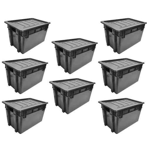 Kit 8 organizador multiuso caixa 60 lts preta com tampa Caixa multiuso fechada 60 litros black