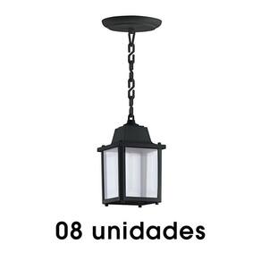 Kit com 08 unidades O pendente colonial em termoplástico é especial para usar em ambientes externos. Como possui proteção UV, ele resiste muito bem as ações do tempo. Uso Externo ou Interno - Cor: preto - Material: termoplástico injetado - Medidas: A 17cm x L 10,5cm x C 10,5cm - Fio: 19 cm - Canopla: Ø 12cm - Proteção UV - Não desbota ou fica quebradiço ao longo do tempo. - Não enferruja - Soquete porcelana: E27 bocal comum - Tensão: 127/220v - BIVOLT - Potência máxima: 20 W - Corrente: 4 A Lâmpada não inclusa