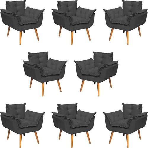 KIT 8 POLTRONAS ALICE SUEDE CORES PÉ TRAPÉZIO 30CM CASTANHO