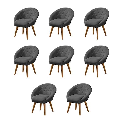 AS IMAGENS SÃO MERAMENTE ILUSTRATIVAS E PODEM SOFRER VARIAÇÕES DE COR E PEQUENOS DETALHES DE ACORDO COM O SEU MONITOR, ILUMINAÇÃO DO AMBIENTE E ATÉ MESMO A SUA PERCEPÇÃO 8 Poltronas Decorativa Canastra Estofada Linho Cinza PÃs Palito em Madeira MaciÃa