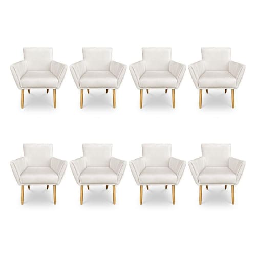 Kit 8 Poltronas Decorativa Leticia Suede Pés Palito Castanho - Pallazio Cor Bege