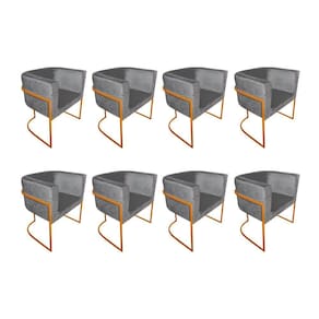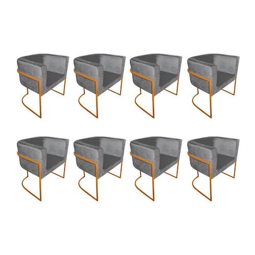 AS IMAGENS SÃO MERAMENTE ILUSTRATIVAS E PODEM SOFRER VARIAÇÕES DE COR E PEQUENOS DETALHES DE ACORDO COM O SEU MONITOR, ILUMINAÇÃO DO AMBIENTE E ATÉ MESMO A SUA PERCEPÇÃO VISUAL.Kit 8 Poltronas Decorativa Sala De Estar Base De Ferro Cobre Veludo Cinza