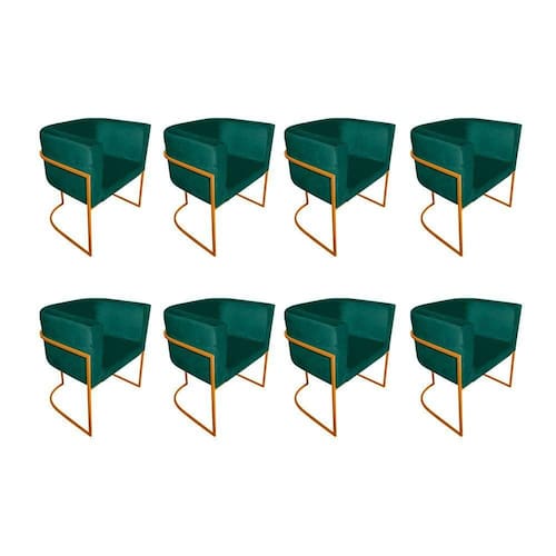 AS IMAGENS SÃO MERAMENTE ILUSTRATIVAS E PODEM SOFRER VARIAÇÕES DE COR E PEQUENOS DETALHES DE ACORDO COM O SEU MONITOR, ILUMINAÇÃO DO AMBIENTE E ATÉ MESMO A SUA PERCEPÇÃO VISUAL.Kit 8 Poltronas Decorativa Sala De Estar Base De Ferro Cobre Veludo Verde