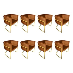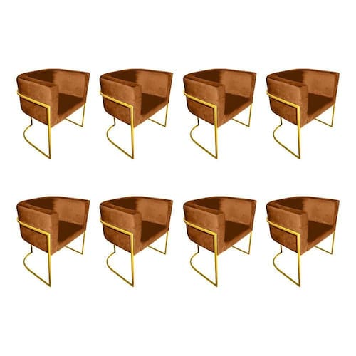 AS IMAGENS SÃO MERAMENTE ILUSTRATIVAS E PODEM SOFRER VARIAÇÕES DE COR E PEQUENOS DETALHES DE ACORDO COM O SEU MONITOR, ILUMINAÇÃO DO AMBIENTE E ATÉ MESMO A SUA PERCEPÇÃO VISUAL.Kit 8 Poltronas Decorativa Sala De Estar Base De Ferro Dourada Veludo Terracota