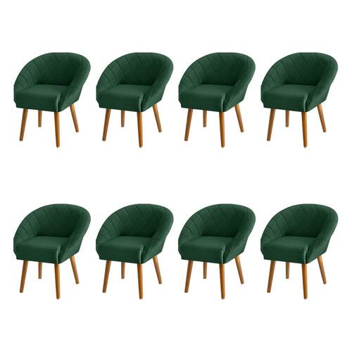 Kit 8 Poltronas Decorativas Giovana Pés Palito Veludo Verde