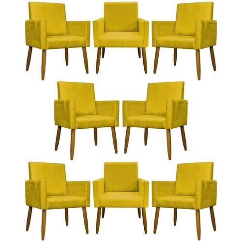 KIT 8 POLTRONAS MARI SUEDE CORES PÉ PALITO 30 CM CASTANHO