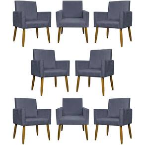 Kit 8 Poltronas Decorativas Mari Pé Palito Castanho - Cinza Suede
