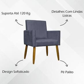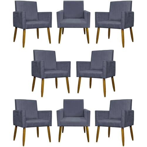 Kit 8 Poltronas Decorativas Para Sala Mari Suede Cores Pé Palito Castanho - Cinza, Suede