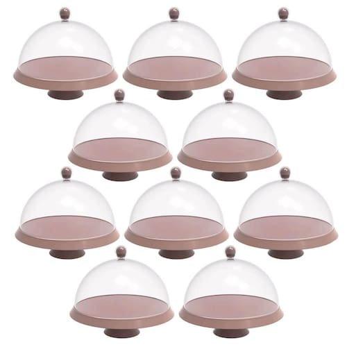 Kit 8 Porta Bolos 25cm Bubble com Cúpula e Pé Crippa Amêndoa Padaria Hotel Confeitaria.