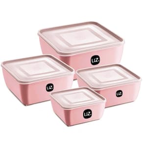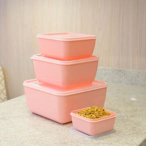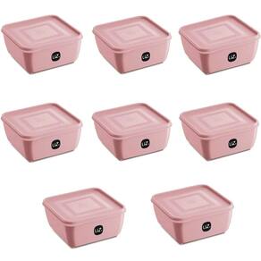 Garantia: 90 dias / Peso: 800g / Cor predominante: rosa / Referência: 7798139204248 Dimensões de cada pote: 17,4cm (C) x 17,4cm (L) x 8,4cm (A); Capacidade: 1,5 litros; Conteúdo: 8 potes multiuso; Material: polipropileno (PP).