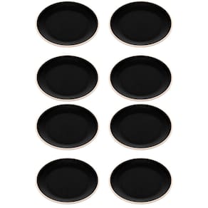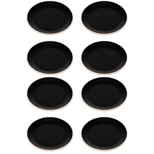 Garantia: 90 dias / Peso de cada: 0,136kg / Cor predominante: preto / Ref: 7794463874027; Dimensões de cada: 21,5cm (D) x 1cm (A); Material: melamina; Conteúdo: 8 pratos de melamina; Limpeza e cuidados: não utilizar produtos químicos ou abrasivos na limpeza.