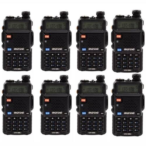 Itens Inclusos: 08 Rádios Baofeng UV5R 08 Baterias 08 Clips de Cinto 08 Cordas de Segurança P/ Punho com 14,5cm 08 Fones de Ouvido Fio com 1,50m 08 Fontes para Carregador 08 Carregadores de Base 08 Antenas 11,8cm 08 Manuais de Instruções Inglês Marca: Não Informado
