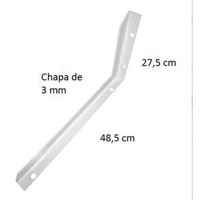 Você tem ideia nos inúmeros lugares que pode utilizar uma mão francesa A mão francesa pode ser utilizada em prateleiras, mesas, suportes, bancadas, vidros, entre outros. Nossas mãos francesas são muito resistentes, aguentando até 50 kg por suporte. Acompanha 16 dezesseis parafusos e 16 dezesseis buchas Nº8 por suporte. ===================== Informações Técnicas: Cor: Branca Resistencia: até 50 kg por suporte Dimensão: 48,5cm x 27,5cm Espessura da Chapa: 3mm OBS: Recomenda-se espaçamento máximo entre os suportes de 50cm. Inclui no kit: - 8x Mão francesa Suporte - 16x Parafusos 5,0 x 40mm - 16x Buchas 8mm =====================