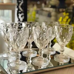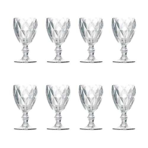Kit 8 Taças de Vidro para Água Diamante Transparente EmCasaTem 340ml