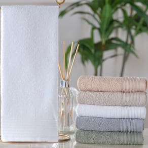 Harmonização de Cores: Escolha as toalhas que complementem a paleta de cores do seu banheiro. As toalhas Brancas são versáteis e se adaptam a qualquer estilo, enquanto as opções Suculenta e Zinco podem adicionar um toque de cor vibrante.