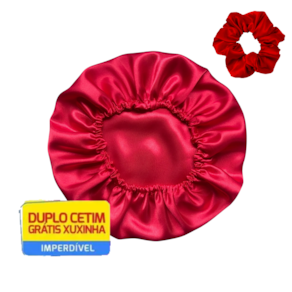 Kit 8 Toucas de Cetim Dupla Face Anti Frizz com Regulador + Xuxinha - Cor: Vermelho