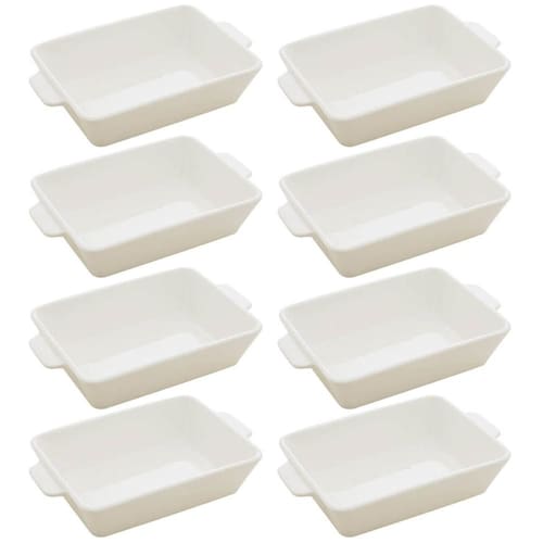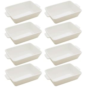 Kit 8 Travessas Refratários de Porcelana 23,5x15cm Assadeiras Brancas Buffet Restaurante