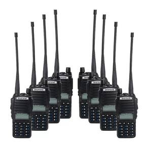 Kit 8 walkie talkie baofeng uv82 de longo alcance uhf vhf com fone bandas de freqência uhf vhf cor preto Rádio comunicador ideal para profissionais que necessitam de comunicação rápida durante o dia, com a praticidade de apertar apenas um botão.