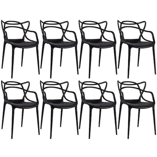 Kit - 8 X Cadeiras Masters Allegra - Preto Modelo: Cadeira Allegra Masters Conhecida no mundo inteiro pelo seu design único e a forma como foi criada a cadeira Allegra Masters é uma homenagem a três cadeiras símbolo da história do design a cadeira Jacobsen de Arne Jacobsen a cadeira Saarinen de Eero Saarinen e a DSR do casal Eames. Os modelos se entrelaçam em uma combinação de curvas dando vida a uma e cativante fusão de estilos. Material da Estrutura: Polipropileno Garantia de 3 meses por de fabricação. Altura Total: 84 cmAltura do Chão Até o Assento: 48 cmProfundidade Interna do Assento: 48 cmLargura Interna do Assento: 53 cmPeso Máx. Recomendado: 120 kgsPeso unitário: 4,2 kgs Não GiratóriaNão DobrávelNão Empilhável