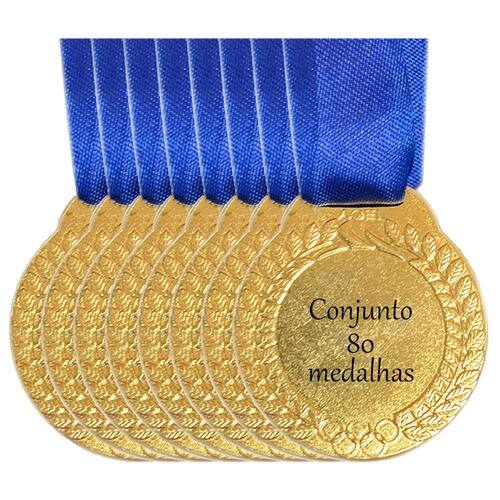 Kit 80 Medalhas Grande Ouro Prata ou Bronze 5cm Meio Liso