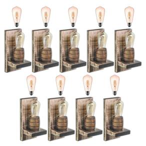 Kit 9 Arandelas Barril Delenha Decor Rústico + Lâmpadas