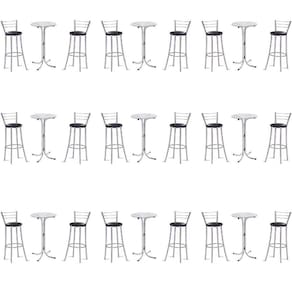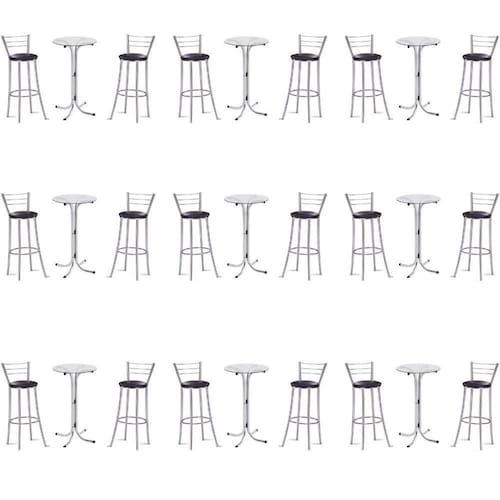 Kit 9 Bistros Com 9 Banquetas Cromadas-gatmagazine O conjunto Bistrô com banquetas GatMagazine além de bonito e charmoso traz harmonia para o seu ambiente!O Bistrô e a banqueta são feitos em aço cromado que traz mais resistência ao produto,O tampo do Bistrô é em vidro de 6mm com 60 centimetros de diamêtro.O produto é próprio para cozinhas,sala de jantar ou espaços gourmet. Marca: NOVA DECOR