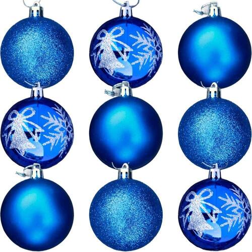 1 Kit Com 9 Bolas Para Árvore De Natal Azul Com Glitter De 60mm;