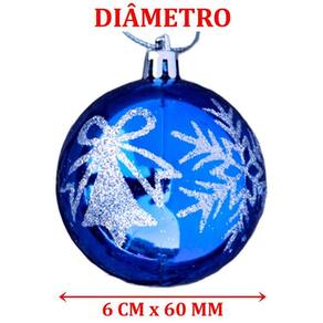 Características Gerais do Produto: - Material: Plástico - Modelo: Bolas De Natal - Cor: Azul - Dimensões aproximadas: Diâmetro 6cm 60mm Garantia: - Garantia contra danos no transporte
