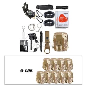 Chegou o mais completo kit de Sobrevivência portátil, acompanhando uma bolsa camuflada que combina com qualquer ambiente de camping. Por ser um modelo compacto você poderá transporta-lo facilmente para qualquer lugar!