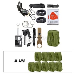 Chegou o mais completo kit de Sobrevivência portátil, acompanhando uma bolsa verde militar que torna a aventura ainda mais emocionante. Por ser um modelo compacto você poderá transporta-lo facilmente para qualquer lugar!