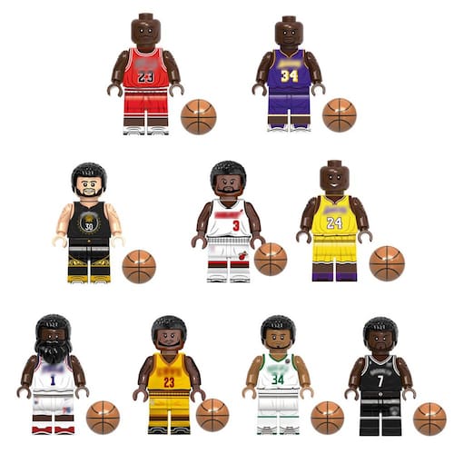 Monte o time dos sonhos com os bonecos de jogadores de basquete americano em blocos de montar! Produzidos em PVC resistente, cada mini figura tem aproximadamente 4 cm de altura, acompanha bola de basquete e base de apoio, perfeita para exibir ou brincar. Ideal para fãs do esporte e colecionadores, esse conjunto une diversão, estilo e qualidade em cada detalhe. Monte, jogue e mostre seu amor pelo basquete com essas miniaturas incríveis! Altura aproximada: 4cm Miniatura em blocos de montar Excelente qualidade e acabamento. Material: PVC Embalagem: Plástico Opp lacrados individualmente Faixa Recomendada: +6 anos (contém peças pequenas)