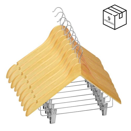 Otimize seu closet com o Kit 9 Cabides de Madeira Com Presilhas e Gancho de Metal. Este kit é a solução perfeita para organizar suas roupas de forma prática e elegante. Os cabides são produzidos em madeira de alta qualidade, garantindo durabilidade e resistência. Além disso, eles possuem presilhas e gancho de metal, proporcionando suporte seguro para calças, saias e blusas.
