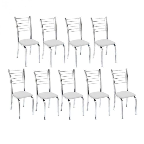 Kit 9 Cadeiras De Jantar Lara Cromada Para Cozinha Assento Corino Branco - Aurora Line
