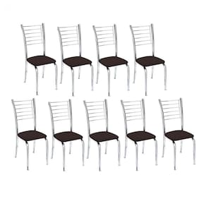 Kit 9 Cadeiras De Jantar Lara Cromada Para Cozinha Assento Corino Marrom - Aurora Line - Blush