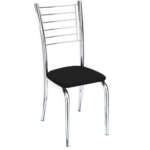 Kit 9 Cadeiras De Jantar Lara Cromada Para Cozinha Assento Corino Preto - Aurora Line