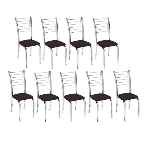 Kit 9 Cadeiras De Jantar Lara Cromada Para Cozinha Assento Sintético Marrom - Aurora Line