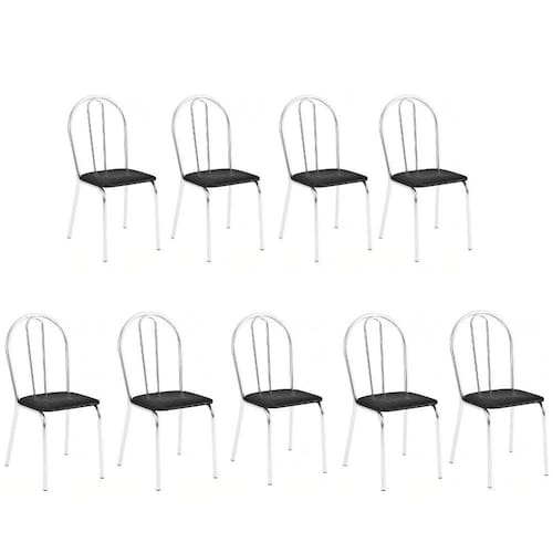 A Cadeira Lisboa possui tubo em aço 1/1.4 banhado em cromo,o que proporciona ao produto charme e resistência!O assento é produzido em madeira e revestido com espuma e tecido sintético.