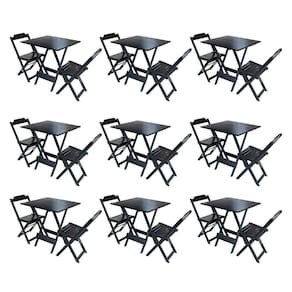 Kit 9 Conjuntos De Mesa Dobravel Com 2 Cadeiras De Madeira 70x70 Para Restaurante E Bar - Preto