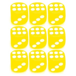 Kit com 9 Dados 6 Faces Translúcido Amarelo 14mm, normalmente utilizado na Umbanda e no Candomblé pela falange da Malandragem, Zé Pilintra e Maria Navalha. Salve a Malandragem!