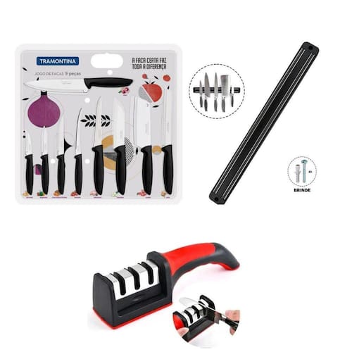 Kit 9 Facas Tramontina + Afiador + Barra Magnética