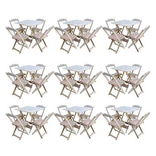 Tipo: Kit 9 Jogos de Mesa 4 Cadeiras Modelo: Dobrável Cor: Crua